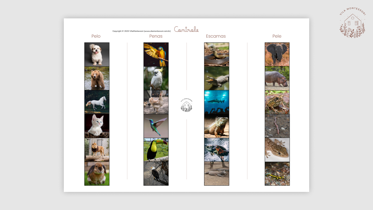 Animais e suas pelagens (Cartões de Classificação) *Opção em Inglês